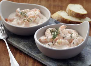 verfeinerten Aiolicreme. Die Garnelen in diesem