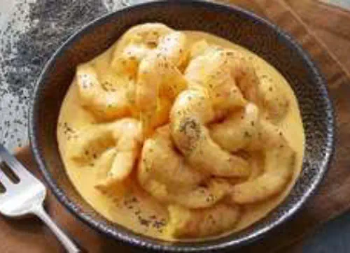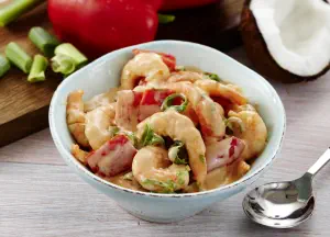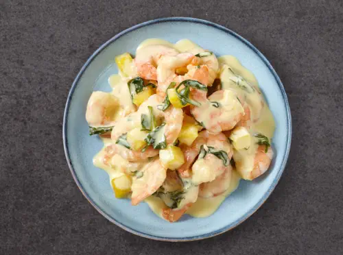 Kokossirup und Saurer Sahne. Die Garnelen in
