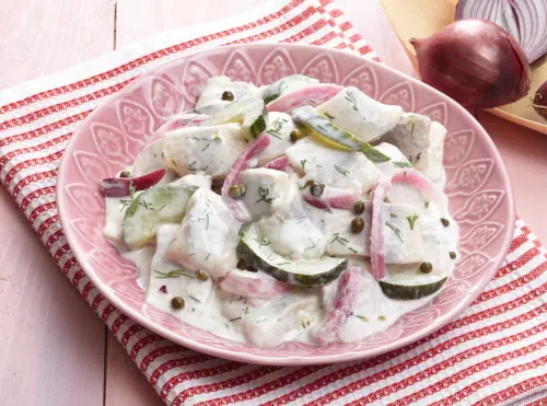 Gewürzgurken, in feiner Tunke mit Joghurt und